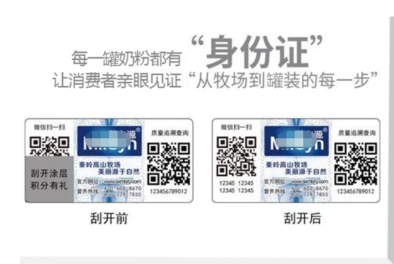 右侧为产品追溯码:扫码后即可查看这罐奶粉的质量检测报告等信息。