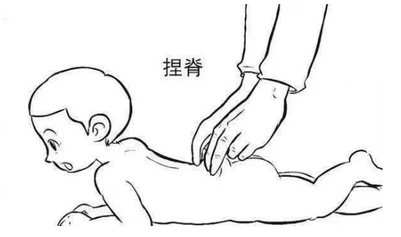 以双手拇指与食指并拢,从尾椎骨沿脊柱两侧向上捏,连皮带肉用力捏起即放下,一起捏至颈部发际处为止,以脊柱两侧皮肤微有潮红为有效