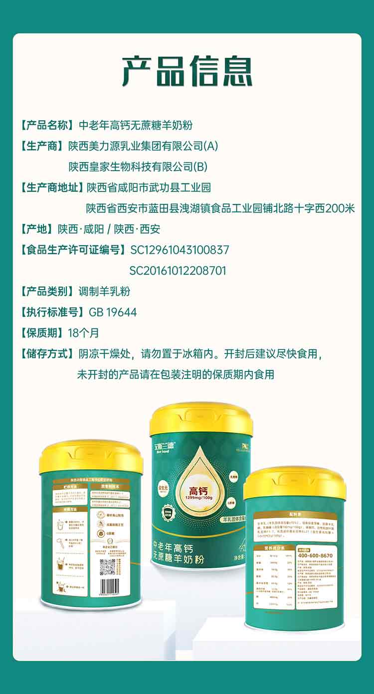 艾斯兰德中老年高钙无蔗糖羊奶粉 - 艾斯兰德 - 杏盛官网